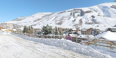 Cette situation un peu à l'écart offre plus de calme que le centre, mais néanmoins un accès direct au secteur Vallée Blanche / Pied Moutet, et surtout la vue la plus réputée de la station, sur la Vallée du Vénéon, le village de Vénosc et la Barre des Ecrins.